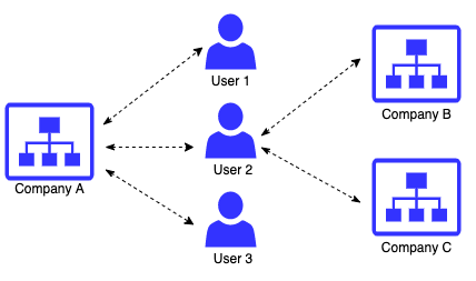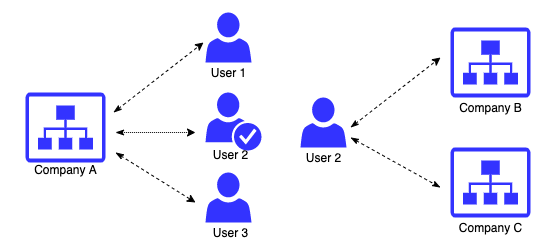 However, User 2 still has a regular affiliation relationship with Company B and Company C. |