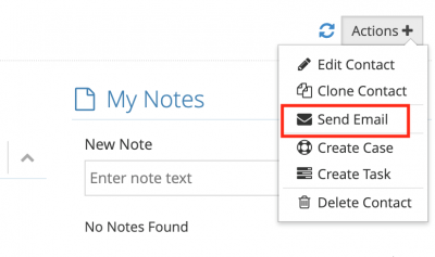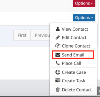 The CRM can generate emails to individual contacts/organizations from one of two locations: