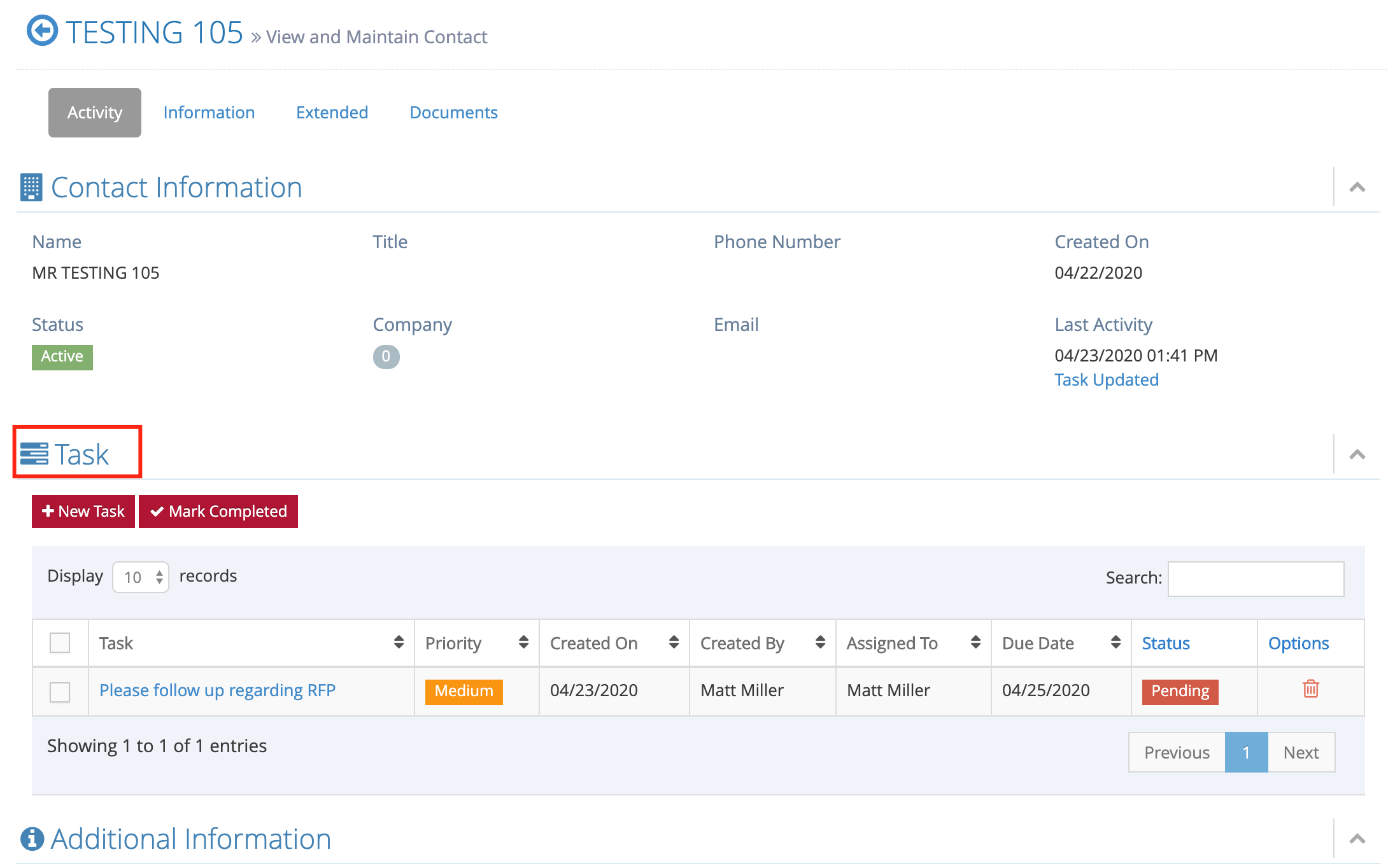 The Information Tab displays all structured data associated with the contact. The following fields are available: