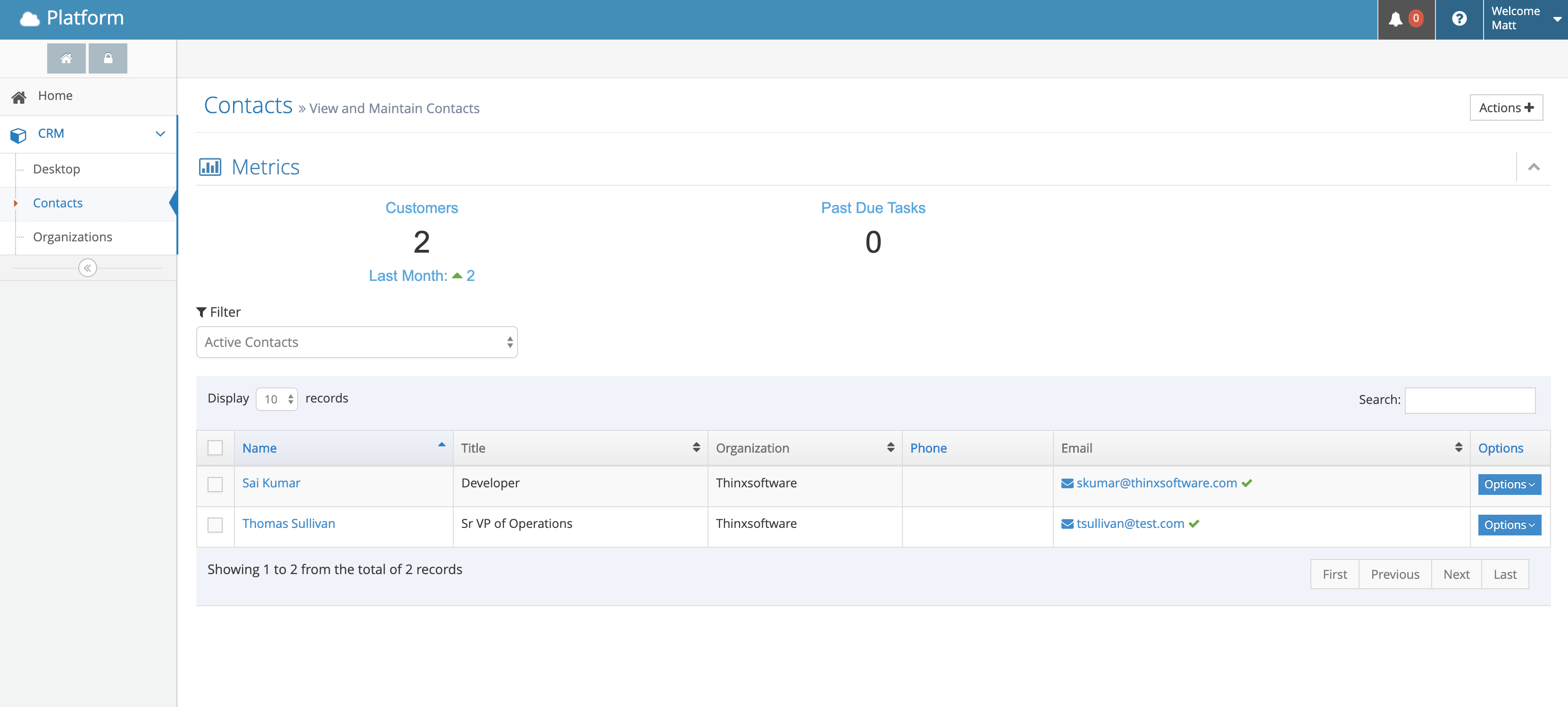 The CRM module offers a robust set of notification capabilities for both contacts and organizations. The capabilities leverage the Thinx! Platform’s Message module to send and receive messages. The CRM module will associate any emails generated from CRM and any emails received in the audit activity for the individual contact/organization. In order for a reply to be associated to a contact/organization: