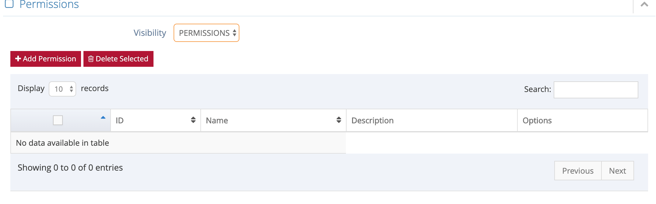 Change the visibility to PERMISSION. The screen will render a table with add and remove buttons.